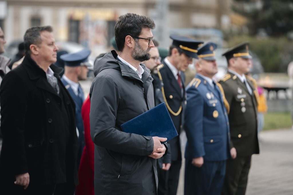 Súčasťou spomienkovej slávnosti bol aj príhovor primátora Nitry Mareka Hattasa, ktorý zdôraznil význam hodnôt, na ktorých stojí slobodná spoločnosť. „Aj v nedokonalom, vojnami a bezprávím poznačenom svete má zmysel konať správne – pretože práve cez praskliny môže prenikať nádej, pravda a svetlo do dní,“ parafrázoval slová známej piesne Anthem od Leonarda Cohena.
